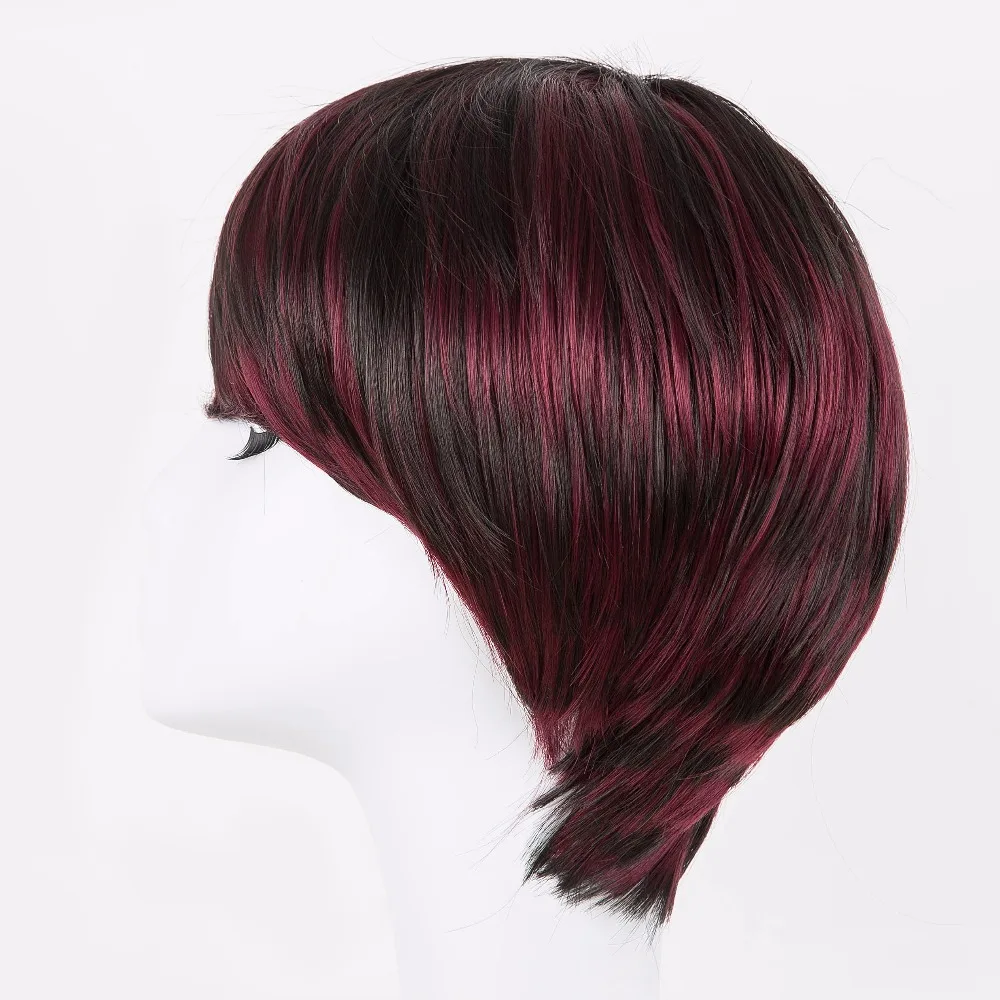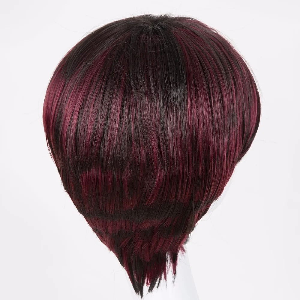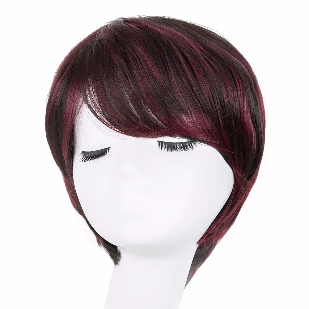 Black And Burgundy Wig Fei-Show Synthetic Short Wavy Hair Heat Resistant Fiber Male Female Peruca Perruque Peruk Women Hairpiece
