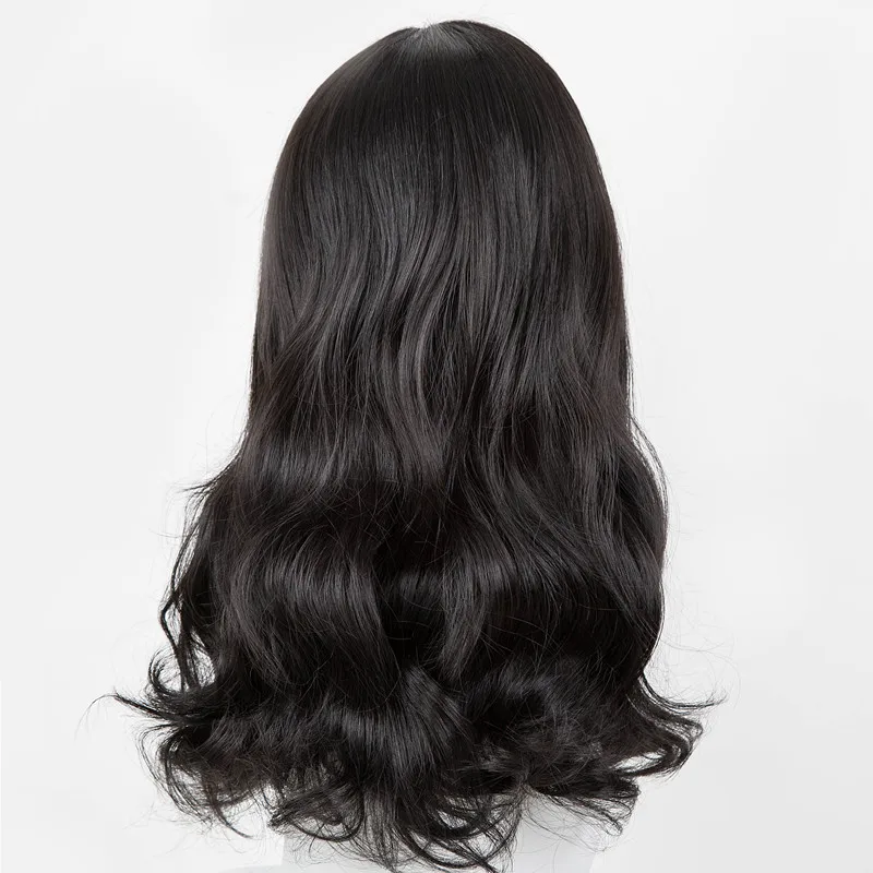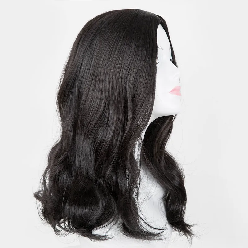 Black Wig Fei-Show Synthetic Heat Resistant Medium Wavy Hair Cosplay Costume Halloween Carnival Party Salon Women Hairpiece