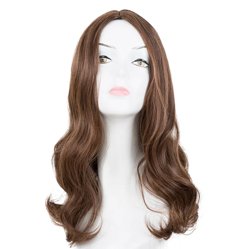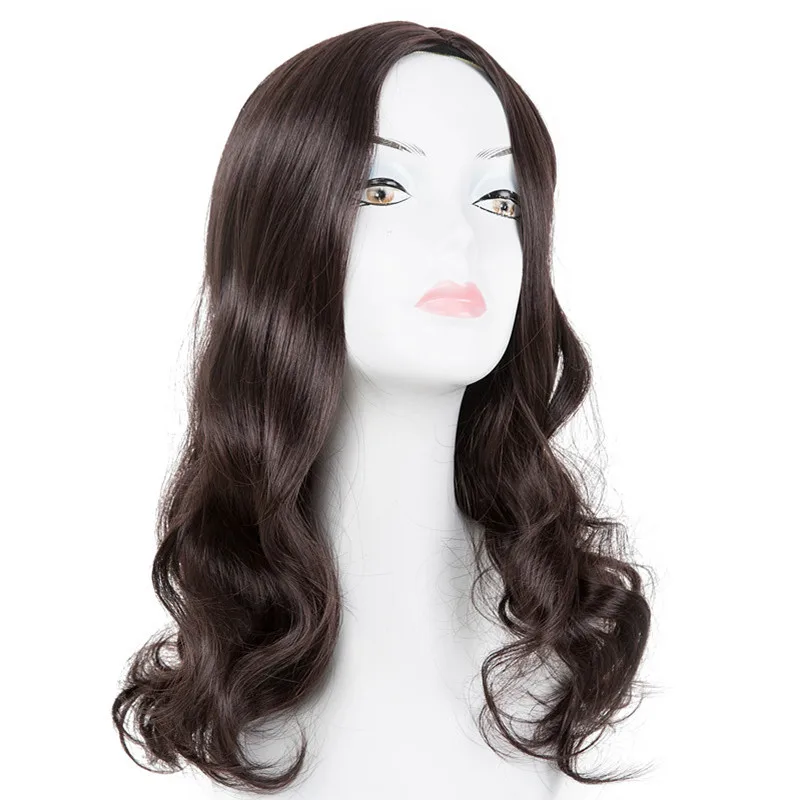 Fei-Show Dark Brown Wig Synthetic Heat Resistant Fiber Long Wavy Hair Women Female Peruca Middle Part Line Costume Hairpiece