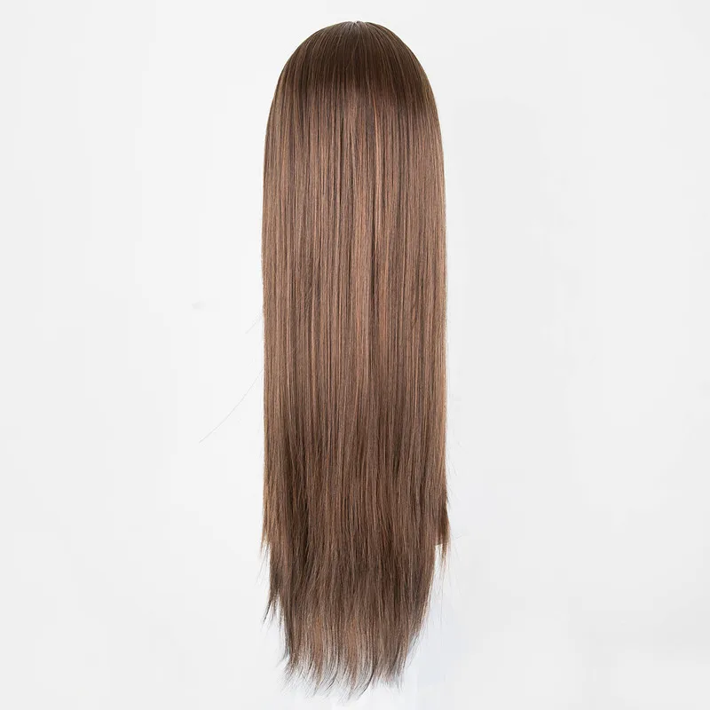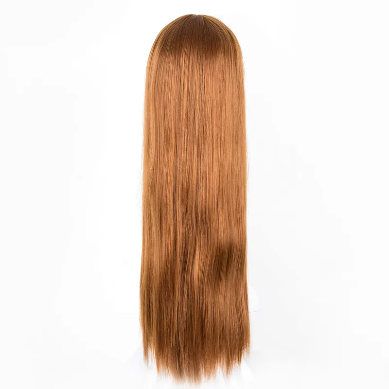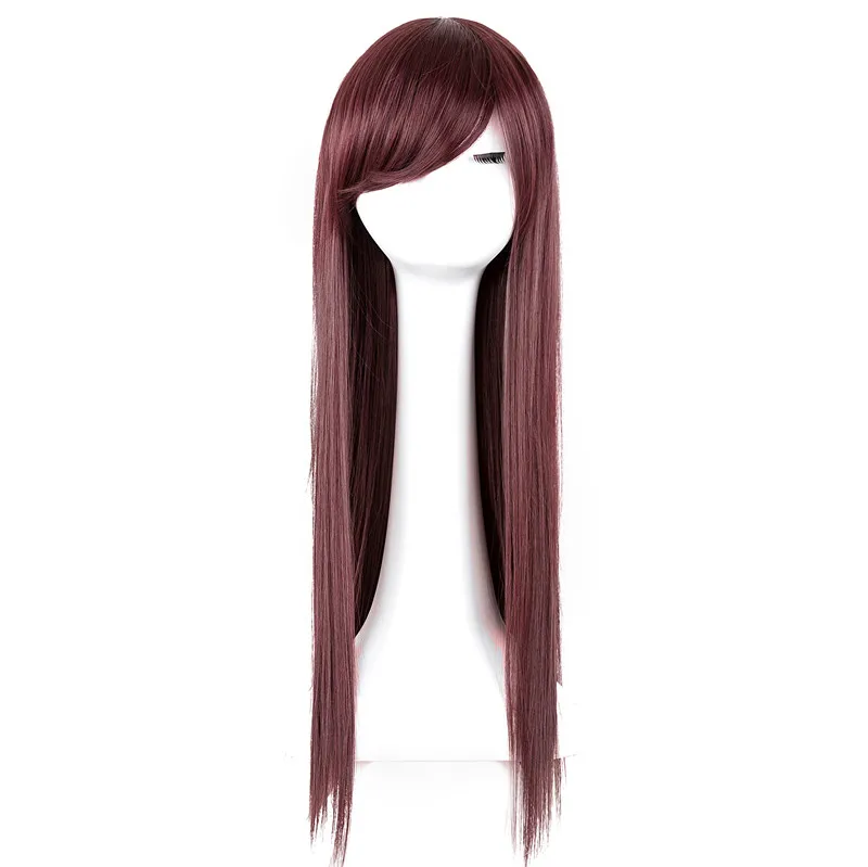 QQXCAIW Long Straight Cosplay Wig With Bangs Party Women Costume Dark Brown Synthetic Hair Wigs Lolita Bob Hairstyles