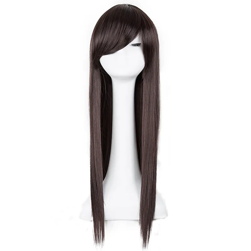 QQXCAIW Long Straight Cosplay Wig Party Women Men Costume Dark Brown 80 Cm Synthetic Hair Wigs
